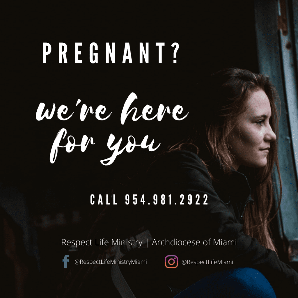For pregnancy support call 954.981.2922 and for post-abortion healing call 954.981.2984. Visit www.respectlife.org