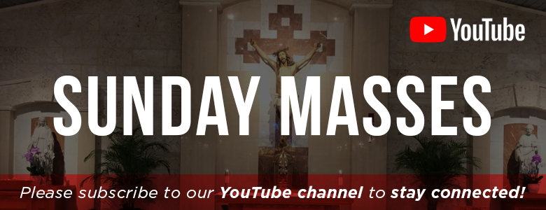For those people who can't attend the church, masses will be livestreamed on our YouTube channel. After the livestream, the Mass will remain uploaded on our YouTube channel for you to watch at any time from your home.